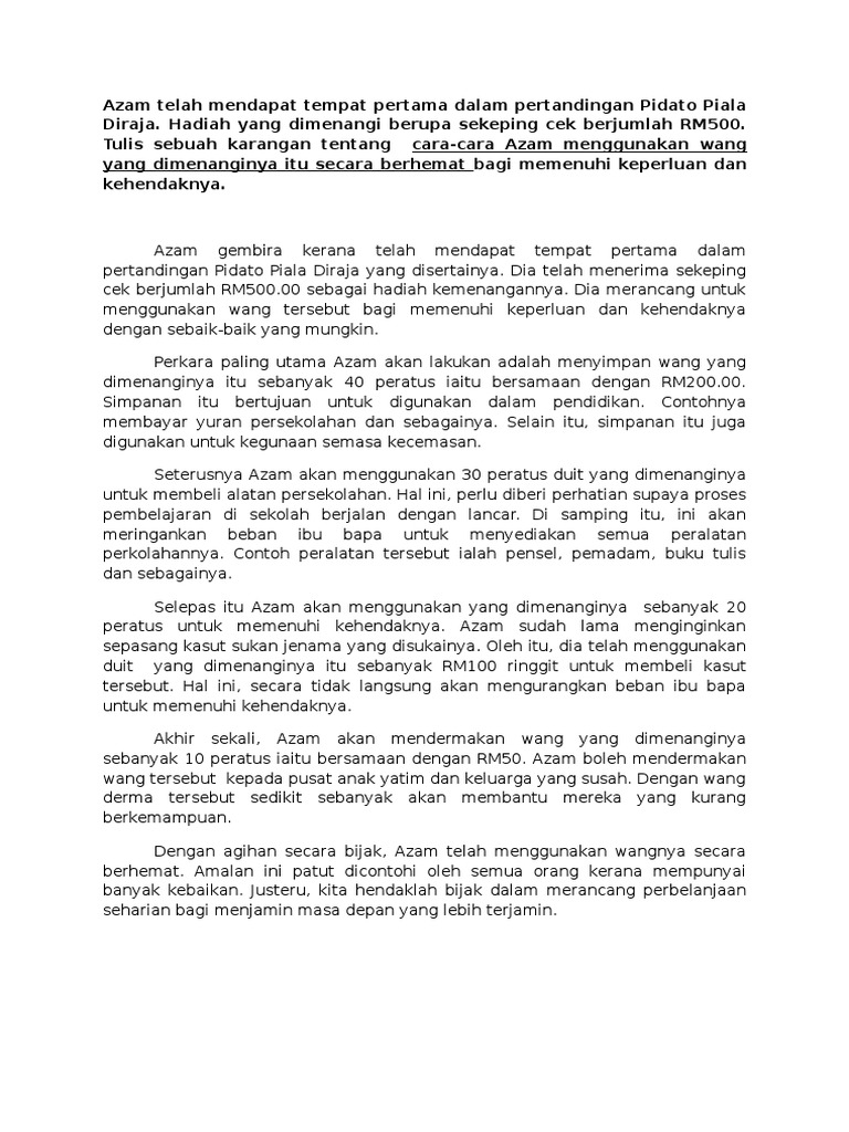 Contoh Karangan Bahasa Malaysia Pengajian Am SPM STPM Kandungan Kepentingan Remaja Menyertai Kegiatan Kesukarelawanan Melengkapkan diri dengan ilmu pengetahuan. Setiap tahun sekolah-sekolah akan sibuk mengadakan hari sukan. Contoh Karangan SPM Sukan Lasak SUKAN LASAK Remaja sekarang memang tahan lasak.